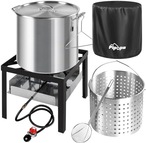 View full details60QT Crawfish Boiler | Seafood Boiling Kit | Dustproof Cover & 12" Skimmer Included | 110,000BTU Propane Jet Burner | 0-20 PSI CSA Certified Regulator | Crab Boil Pot for Outdoor Backyard Cooking