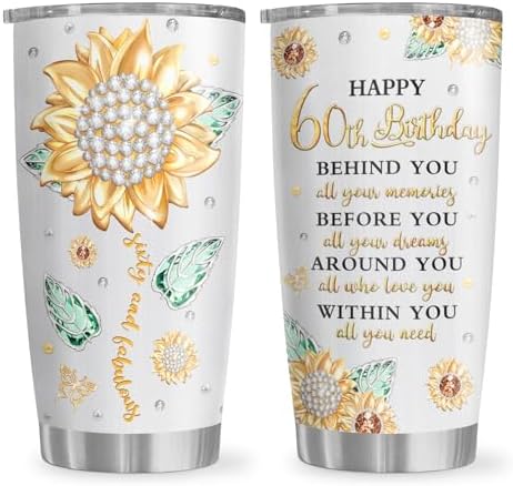 View full details60th Birthday Gifts for Women Tumbler 20oz, Happy 60th Birthday Decorations, 60 Year Old Gifts for Women/Her/Mom/Grandma