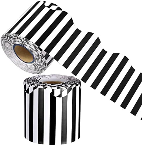 View full details65 Feet Scalloped Bulletin Board Border Self Stick Classroom Striped Borders Wavy Line Border for Bulletin Cork Board Desk Classroom Christmas Party Supplies Decor (Black and White Stripes)