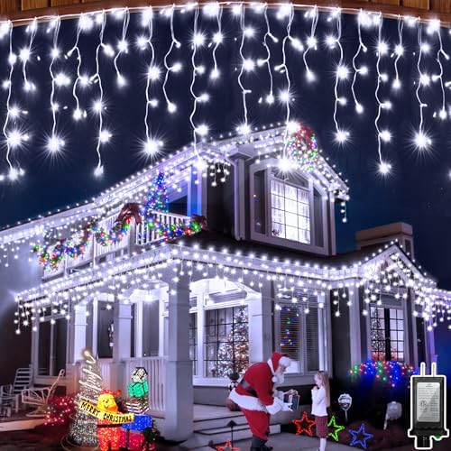 View full details648 LED Christmas Lights with 144 Drops, 66ft 8 Modes Christmas String Lights Outdoor, Waterproof Christmas Decorations Fairy Lights with Timer Memory for Xmas Party Patio Window Fence Multicolor