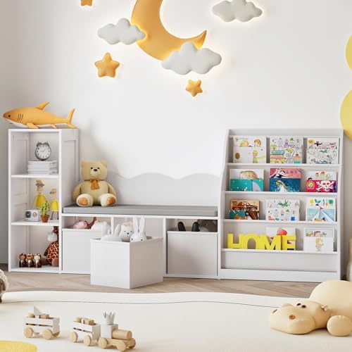 View full details66.9" Kids Bookshelf with Reading Nook, 3-in-1 Kids Bookcase with Cushion and Sling Shelf, Toy Chest Storage with Fabric Drawers, Reading Nook for Kids, for Playroom, Nursery, White MCW08WB