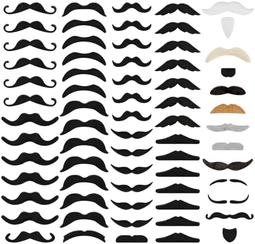 View full details66 PCS Novelty Fake Mustache Self Adhesive Beard, Costume Mustaches Stickers for Cosplay, Halloween, Christmas for All Age