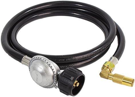 View full details6FT Propane Adapter Hose with Regulator and Elbow Adapter, Fits Blackstone 17 inch and 22 inch Table Top Griddle, Flat Pressure Relief Valve, 3/8'' Connect Fitting