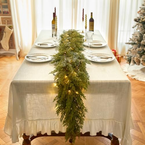 View full details6FT Real Touch Cedar Garland Christmas Winter Artificial Faux Greenery Garland with Light for Table Mantle Stairs Fireplace Wall Decor Outdoor Indoor Porch Home Decorations (Battery Not Included)