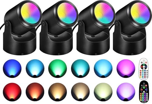 6W RGBW Up Lights Indoor Christmas Spotlight Indoor LED Color Changing Uplighting Indoor with Remote 120V Spot Lights Indoor Plug in Floor Spotlight Indoor for Plant Picture Party, 4 Pack