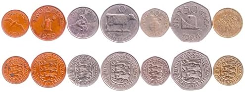 View full details7 Coins from Guernsey | Giernesiais Coin Set Collection 1 2 5 10 20 50 Pence 1 Pound | Circulated 1977-1984 | Cattle | Gannet | Windmill | Guernsey Lily