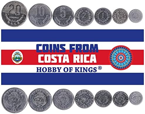 View full details7 Coins from Costa Rica | Costa Rican Tico Coin Set Collection 1 5 10 25 50 100 500 Colones | Circulated 1997-2005 | Laurel Wreath | Ship | Star | Volcano | Coffee Branch