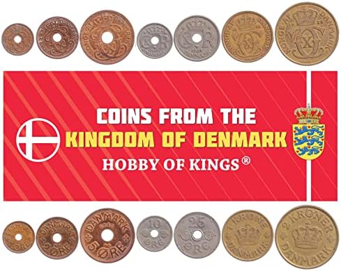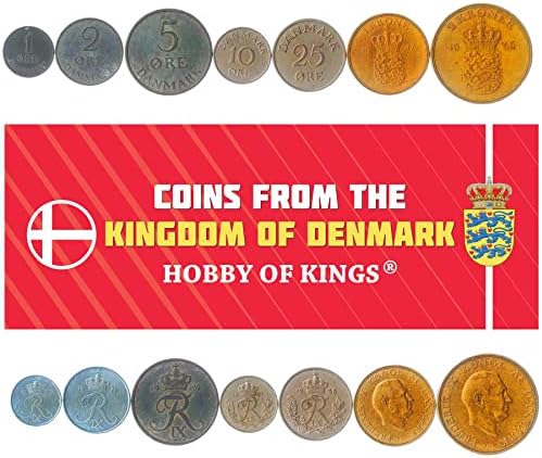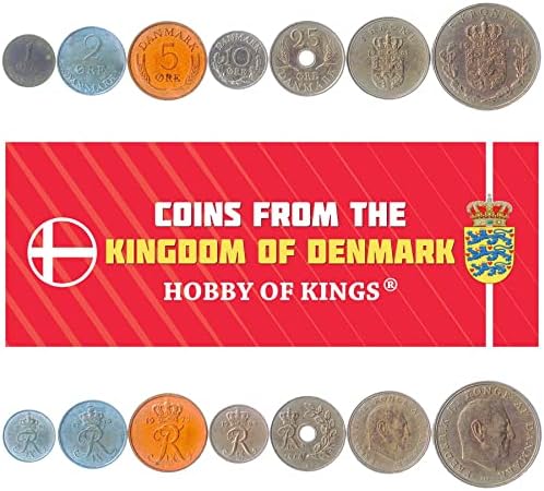 7 Coin Set from Denmark also known as (Kingdom of Denmark, Kongeriget Danmark). Denominations: 1, 2, 5, 10, 25 Øre, 1, 5 Kroner. Each product ma...