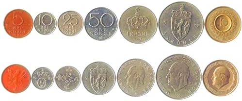 View full details7 Coins from Norway | Norwegian Coin Set Collection 5 10 25 50 Ore 1 5 10 Kroner | Circulated 1973-1991 | King Olav V