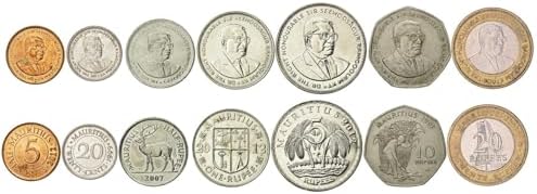 7 Coin Set from Mauritius also known as (Republic of Mauritius, République de Maurice). Denominations: 5, 20 Cents, 1/2, 1 Rupee, 5, 10, 20 Rupe...