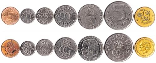 7 Coin Set from Sweden also known as (Kingdom of Sweden, Konungariket Sverige). Denominations: 5, 10, 25, 50 Öre, 1, 5, 10 Kronor. Each product ...