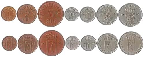 View full details7 Coins from Norway | Norwegian Coin Set Collection 1 2 5 10 25 50 Ore 1 Krone | Circulated 1951-1957 | Norwegian Lion