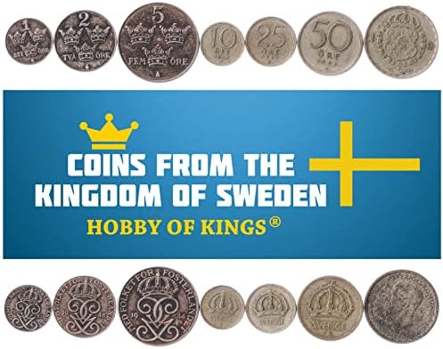 7 Coin Set from Sweden also known as (Kingdom of Sweden, Konungariket Sverige). Denominations: 1, 2, 5, 10, 25, 50 Öre, 1 Krona. Each product ma...