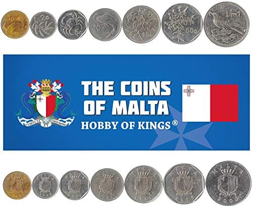 View full details7 Coins from Malta | Maltese Coin Set Collection 1 2 5 10 25 50 Cents 1 Lira | Circulated 1991-2007 | Blue Rock Thrush | Mahi Mahi | Weasel | Maltese Freshwater Crab