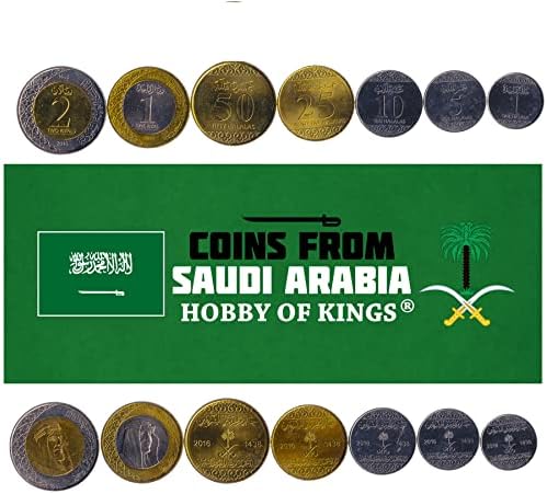 7 Coin Set from Saudi Arabia also known as (Kingdom of Saudi Arabia, ٱلْمَمْلَكَة ٱلْعَرَبِيَّة ٱلسُّعُوْدِيَّة). Denominations: 1, 5, 10, 25, 5...