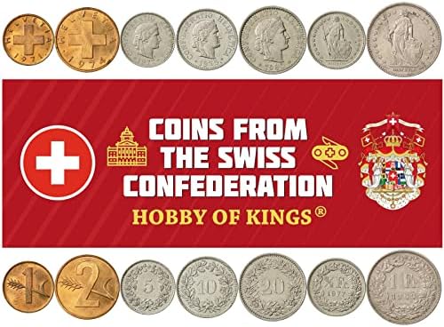 7 Coin Set from Switzerland also known as (Swiss Confederation, Schweizerische Eidgenossenschaft). Denominations: 1, 2, 5, 10, 20 Rappen, 1/2, 1...