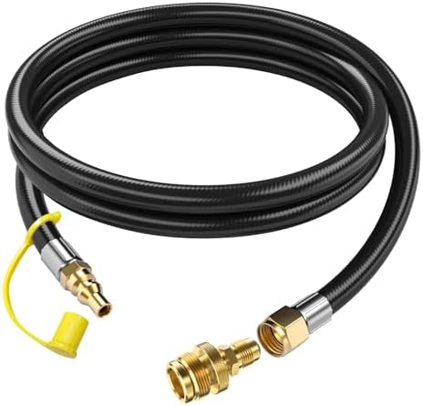View full details7 FT RV Propane Quick Connect Hose to Grill, BBQ Quick Release LP Gas Line for Camp Chef Stove, Pit Boss Burner-1/4 Male Plug x 3/8 Female Flare-with Elbow Adapter for Blackstone 17"22"28''36''Griddle