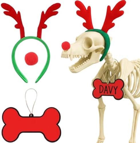 Skeleton Dog Costume Accessories: our 7-foot Skeleton Dog Accessories include a large reindeer antler headband, a red nose, a collar, which are ...