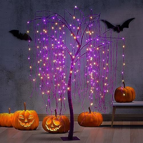 View full details7 FT Halloween Lighted Willow Tree 256 LED Orange and Purple Lights Artificial Weeping Willow Tree with 6 Spiders Outdoor Indoor Decoration Christmas Festival Party Home Decor