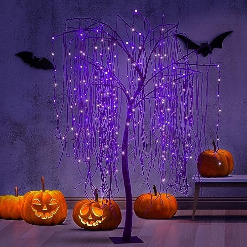 View full details7 FT Halloween Lighted Willow Tree 256 LED Purple Lights Artificial Weeping Willow Tree with 6 Spiders Outdoor Indoor Decoration Christmas Festival Decor
