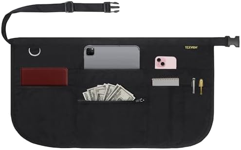 View full details7 Pockets Server Apron with Buckle Closure & Zippered Money Pouch – Stain Resistant, Black Waitress Apron