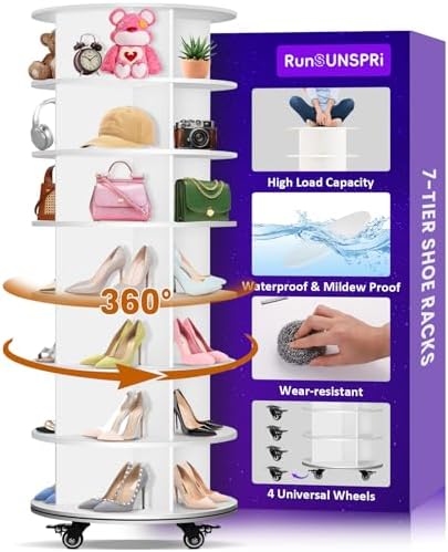 View full details7 Tier Rotating Shoe Rack with 4 Universal Wheels, 360° Revolving Free Standing Shoe Organizer, Multifunctional Storage Revolving Shoe Rack Tower, Spinning Shoe Racks Display Lazy Susan Equipped