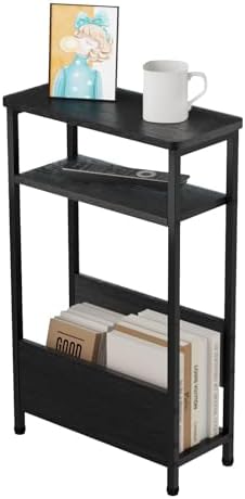 View full details7.1" Narrow Side Table for Small Spaces, 3 Tier Small End Table with Magazine Holder, Slim/Skinny Nightstand/Bedside Table for Living Room, Bedroom, 15.4" L x 24.2" H, Black