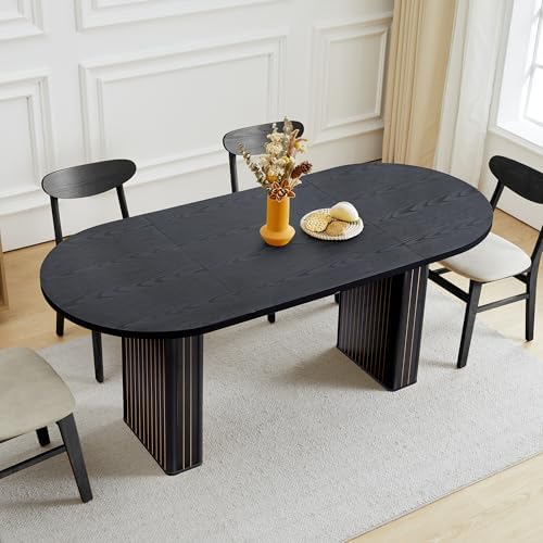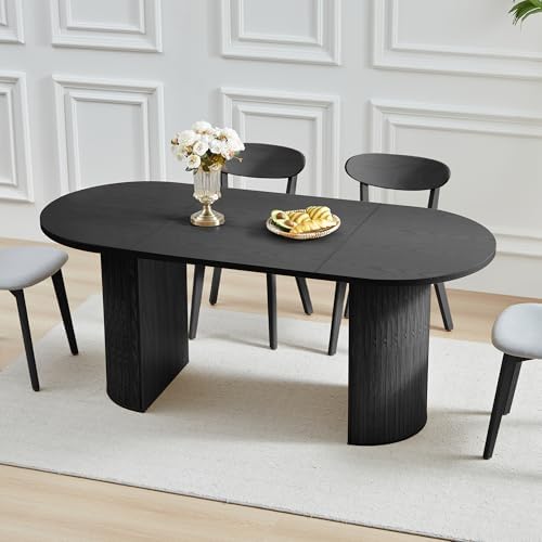 View full details70.8 Inch Dining Table for 4-6 People, Oval Kitchen Table with Semi-Cylindrical Legs Base, Modern Farmhouse Round Dinner Tables for Dining Room Kitchen Living Room (Black)