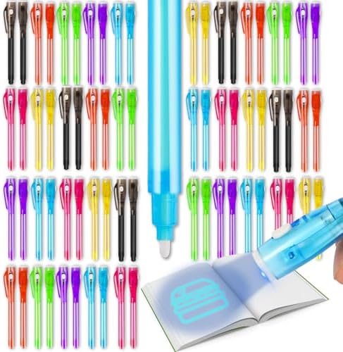 View full details70PCS Invisible Ink Pens with UV Light – 7 Colors Spy Pens for Secret Messages – Fun Party Favors, Halloween, Christmas, Stocking Stuffers, Treasure Hunt, Classroom & Birthday Gifts