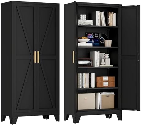 View full details71'' Farmhouse Metal Storage Cabinet with Barn Doors,Steel File Cabinet for Home Office,Kitchen Pantry 4 Adjustable Shelves,Freestanding Cupboard for Kitchen,Home Office (Black)