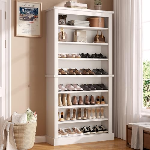 View full details71'' Tall Freestanding Shoe Cabinet with Open Storage, 9-Tier Thickened Wood Shoe Rack with Adjustable Shelves for Entryway, Hallway & Small Spaces, Modern White Storage Organizer (White)