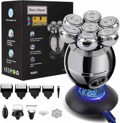 View full details7D Electric Bald Shaver - 5-in-1 Dry/Wet Men's Head Shaver with Led Display & IPX7 Waterproof, Detachable, Rechargeable Razor