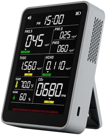View full details9-in-1 Professional Indoor Air Quality Monitor Indoor Portable PM2.5/PM10/CO2,Temperature, Formaldehyde Detector,Humidity TVOC,Time Display Air Quality Tester