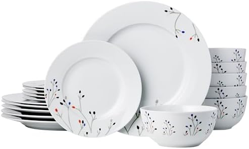 View full detailsAmazon Basics Dinnerware Set, Microwave and Dishwasher Safe, Service for 6, 18-Piece Complete Kitchen, Plates, Dishes, Bowls, Branches