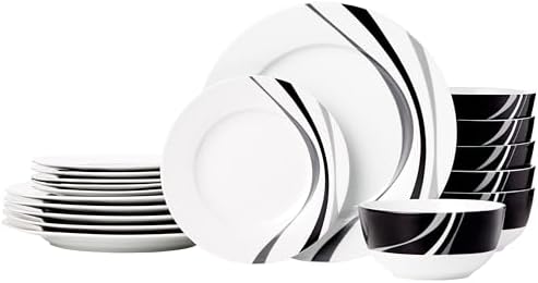 View full detailsAmazon Basics Dinnerware Set, Microwave and Dishwasher Safe, Service for 6, 18-Piece Complete Kitchen, Plates, Dishes, Bowls, Swirl