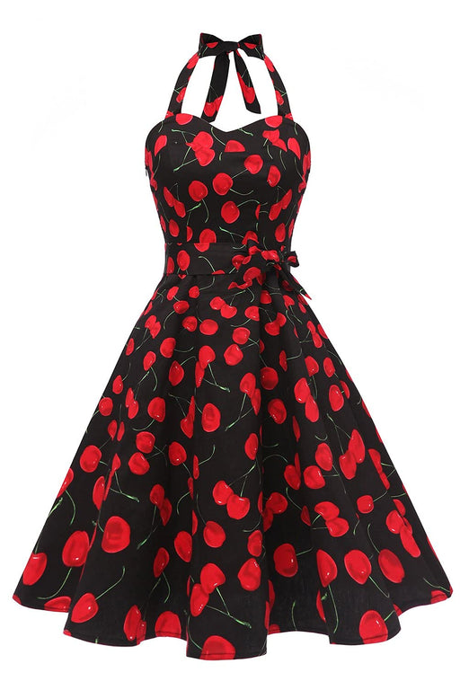 View full detailsTopdress Women's Vintage Polka Audrey Dress 1950s Halter Retro Cocktail Dress Black Cheery 3XL