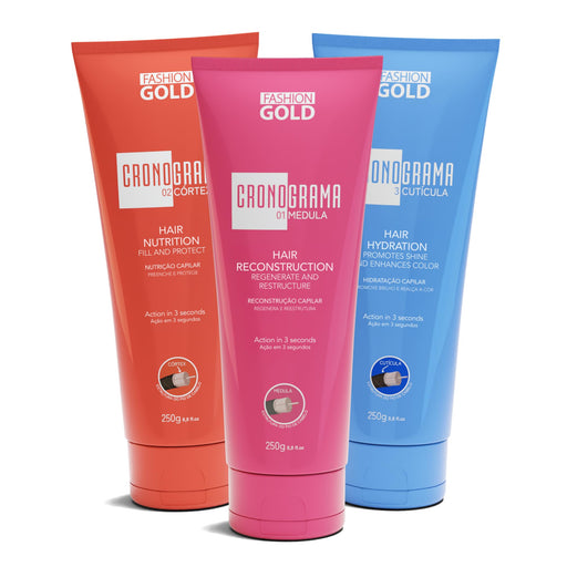 Brand: Fashion GoldColor: GoldFeatures: 3-in-1 FORMULA to NOURISH, HYDRATE and REPAIR: CRONOGRAMA CAPILAR from Fashion Gold works with all hair ty...