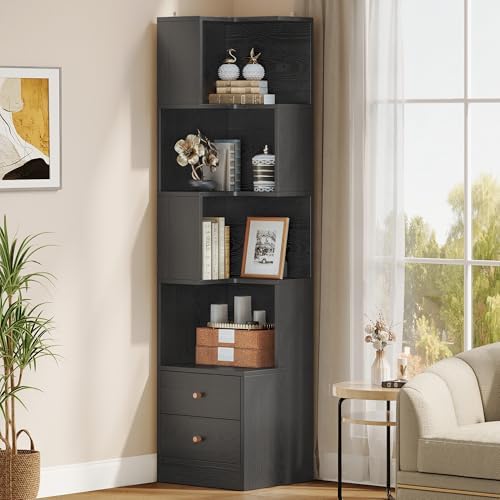 View full detailsIRONCK Corner Bookshelf, 70.87" Tall Corner Bookcase with Drawers, Corner Shelf Storage Display Rack for Living Room Home Office, Black