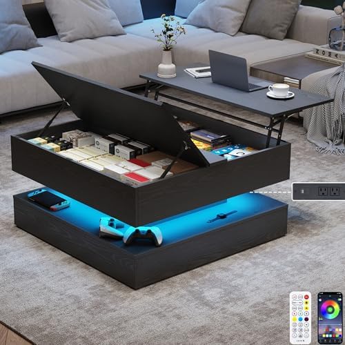 View full details35.4" Large Square Coffee Table with Lifting top,Charging Station,Modern 2-Tier Square Center Table w/Hidden Compartment Storage,Tea Table with Wood Grain for Living Room, Office,Black