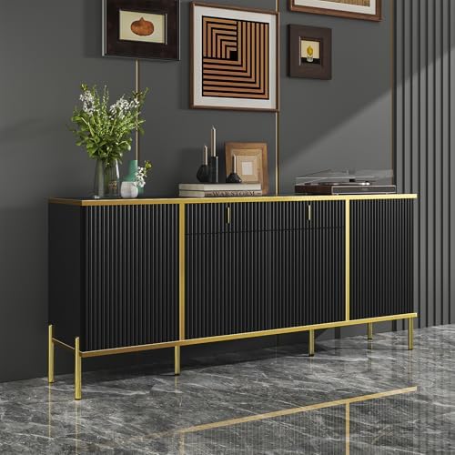 View full detailsoneinmil 60” Modern Sideboard Buffet Cabinet, Fluted Storage Sideboard with Adjustable Shelves & Pop-Up Doors, Multifunctional Accent Cabinet for Kitchen, Living Room, Hallway, Black and Gold