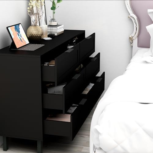View full detailsTaoHFE Black 6 Dresser for Bedroom Modern Black Chest of Drawers for Nursery Wood Dresser for Kids Horizontal Dressers & Chests of Drawers for Bedroom Living Room