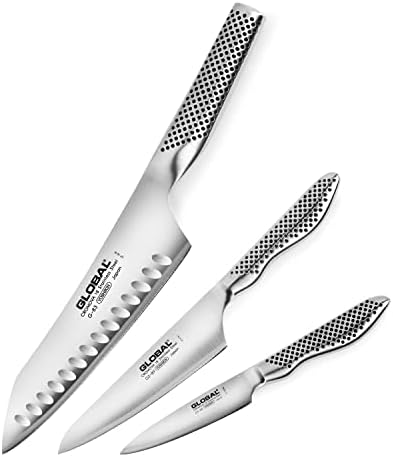 Global Knife Set Includes: 3.5" Paring Knife, 5" Prep Knife & 7" Hollow Edge Asian Chef's Knife High tech molybdenum/vanadium Cromova 18...