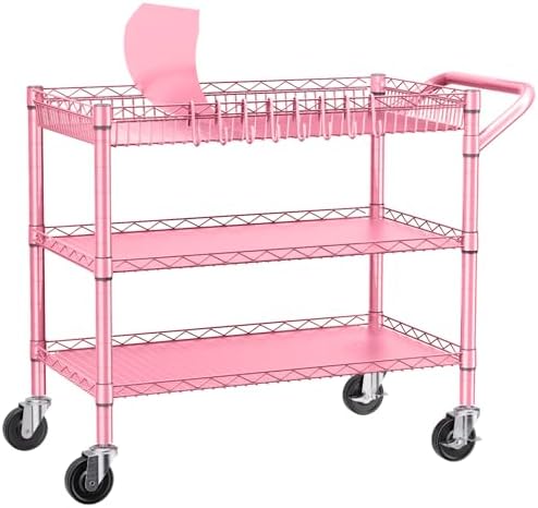 View full detailsNTE Utility Cart with Wheels, 990lbs Capacity Metal 3 Tier Rolling Carts, NSF Kitchen Carts On Wheels with Storage, Heavy Duty Utility Cart with Handle & Wire Shelf for Indoor & Outdoor Use, Pink