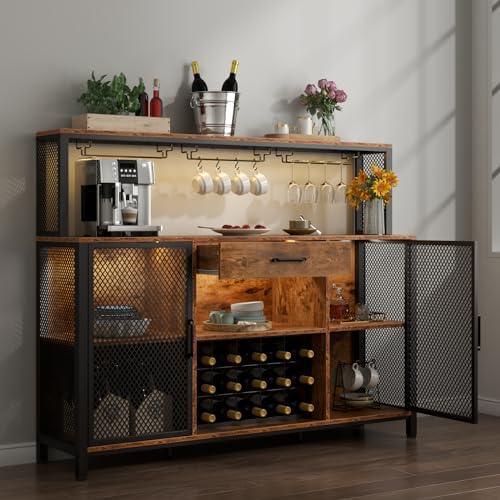 View full detailsWine Bar Cabinet with Drawer and LED Lights, 55 Inches Industry Coffee Bar Cabinet with Wine Rack and Glass Goblet Holder, Kitchen Sideboard Buffet Cabinet for Liquor and Goblet