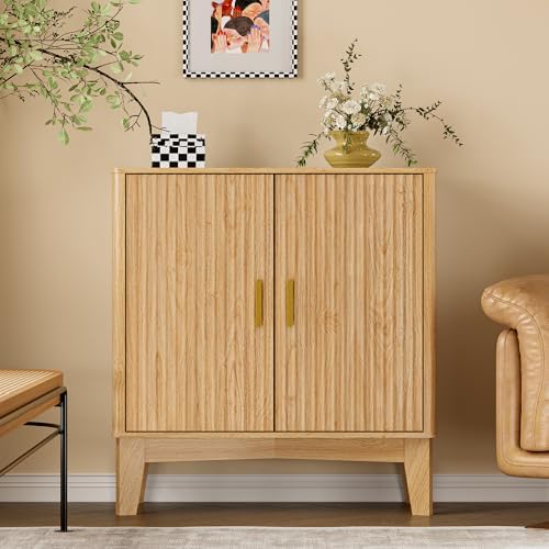 View full detailsStorage Cabinet with Doors and Adjustable Shelf, Modern Fluted Sideboard Buffet Cabinet, Freestanding Coffee Bar for Kitchen, Pantry, Entryway, Living Room (Natural Oak)