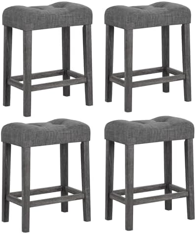 View full detailsGiantex 24" Bar Stools Set of 4, Backless Counter Height Saddle Bar Stools w/Padded Seat, Solid Rubber Wood Legs, Farmhouse Linen Fabric Upholstered Barstools for Kitchen Counter Island, Cafe, Gray
