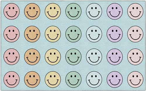 View full detailsFlagship Carpets Schoolgirl Style Pastel Rainbow Smileys Criss-Cross Applesauce Educational Area Rug for Kids Room, Children's Classroom for Teaching and Playroom, 7'6" x 12', Multi, Seats 28