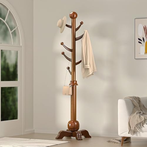 View full detailsHall Tree, Freestanding Wood Tree Rack with 7 Hooks, Coat Rack with Stable Sphere Base, Wooden Coat Rack Stand, Load 210 lb, Coat Hanger Stand for Entryway, Hallway, Bedroom, H:72 in, Walnut