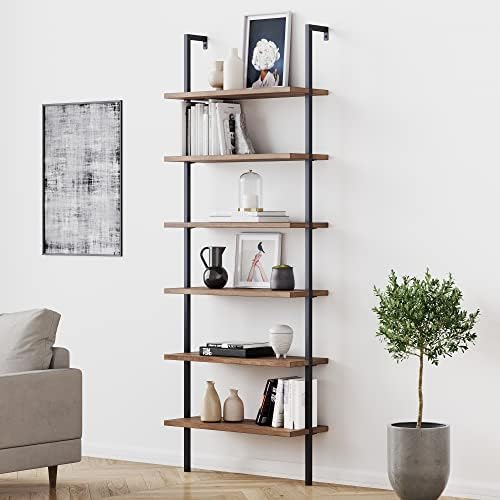 View full detailsNathan James Theo 6-Shelf Tall Bookcase, Wall Mount Bookshelf with Reclaimed Wood and Industrial Metal Frame, Oak/Black