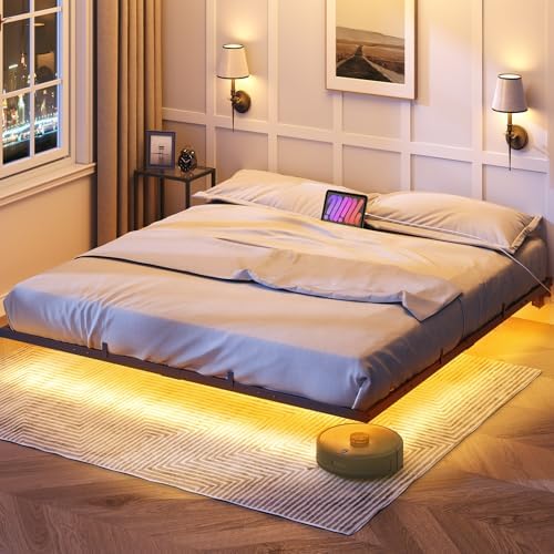 View full detailsHOOBRO Floating Bed Frame King Size, Bed Frame with Charging Station and LED Lights, Industrial Style Metal Platform King Bed, Soundless, No Box Springs Needed, Black
